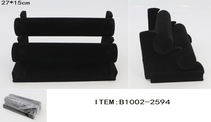 SOPORTE DESMONTABLE PARA JOYAS, EXHIBIDOR PARA PULSERA O RELOJES ACABADO EN TERCIOPELO ESTRUCTURA DE PVC Y BASE DE MDF